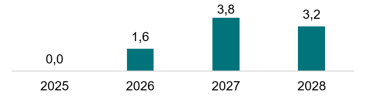 Финансовое обеспечение меры, млрд рублей Поэтапное предоставление субсидии в размере до 20 % стоимости строительства судна на финансовое обеспечение затрат